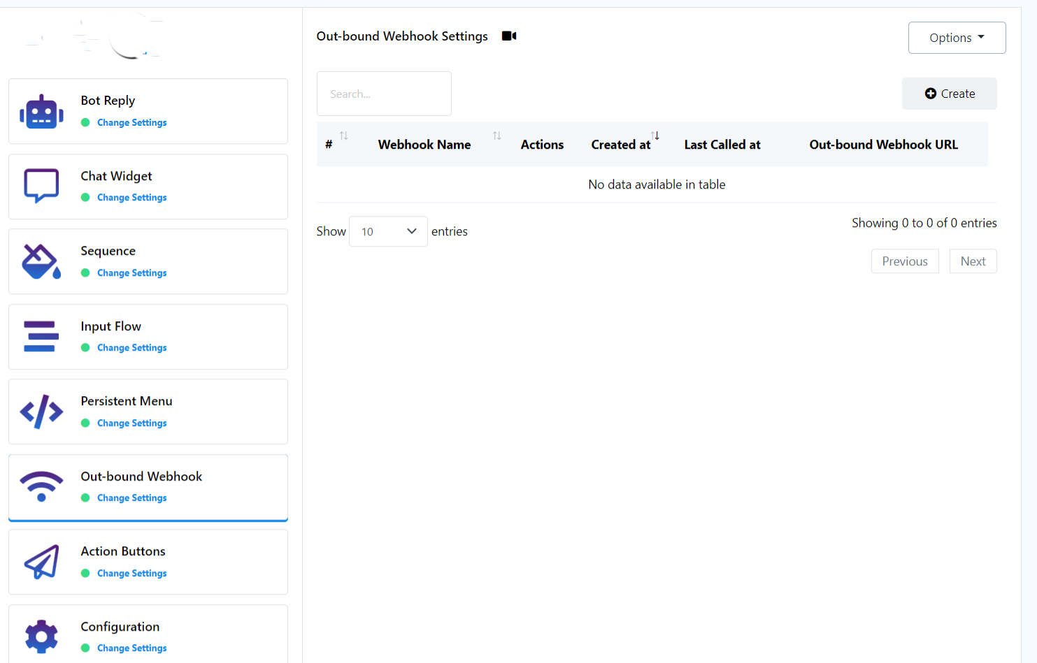 1. Navigate to the `Outbound Webhook Settings`.